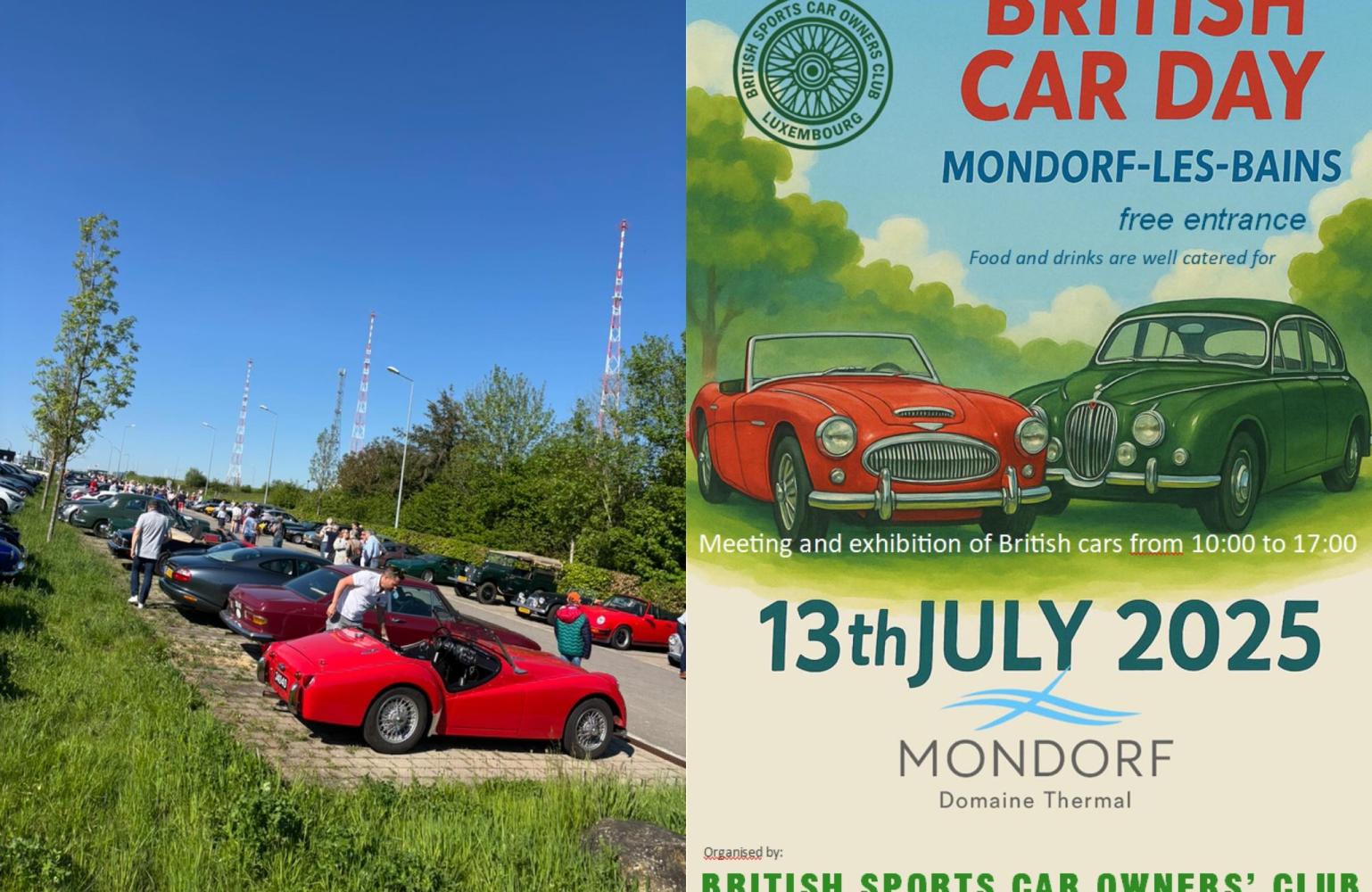 Sunday 13th July: Meeting for all british cars in the fantastic Park in Mondorf-les-Bains. Free entrance from 10H00 to 17H00. Join us and show off your beloved automobile. Organized by the British Sports Car Owners’ Club Luxembourg. Food and drinks on site