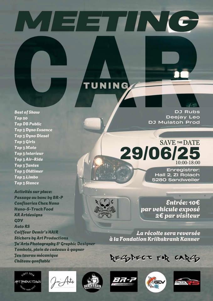 Le Groupe Respect For Cars vous invite à son Tuning Meeting Car exceptionnel ! Que vous soyez passionné de voitures sportives, de véhicules modifiés ou de modèles anciens, cet événement est fait pour vous !