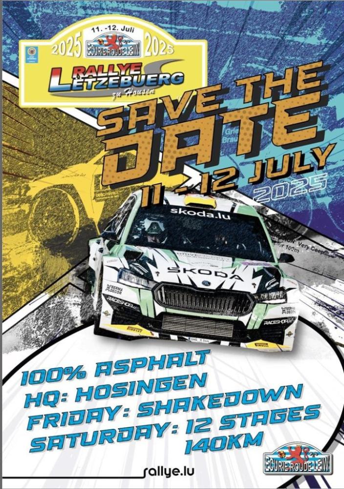 July 11th, 2025: 16:00 - 20:00 SHAKEDOWN July 12th, 2025: 08:00 - 19:00 Rallye Lëtzebuerg / 12 special stages